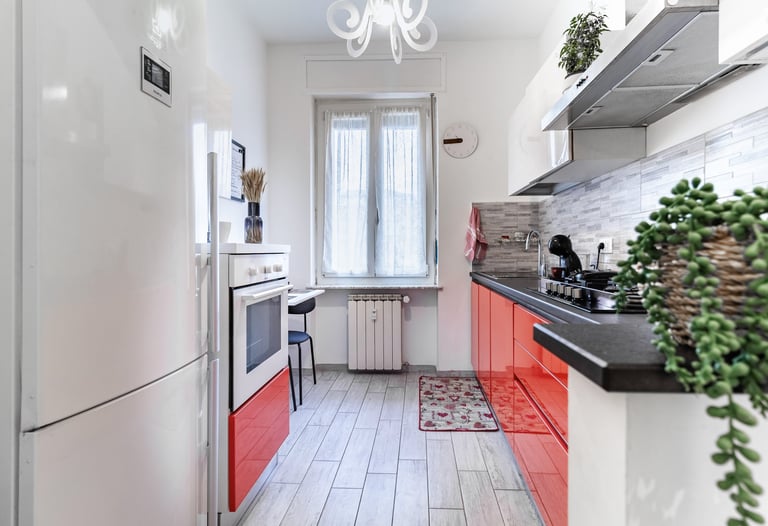 Large and functional eat-in kitchen, fully equipped to give you all the comfort of home: five-burner cooktop, oven, dishwasher, fridge with freezer, washing machine, kettle, coffee machine, and a complete set of utensils and dishes, ideal for preparing and enjoying your meals in total comfort.